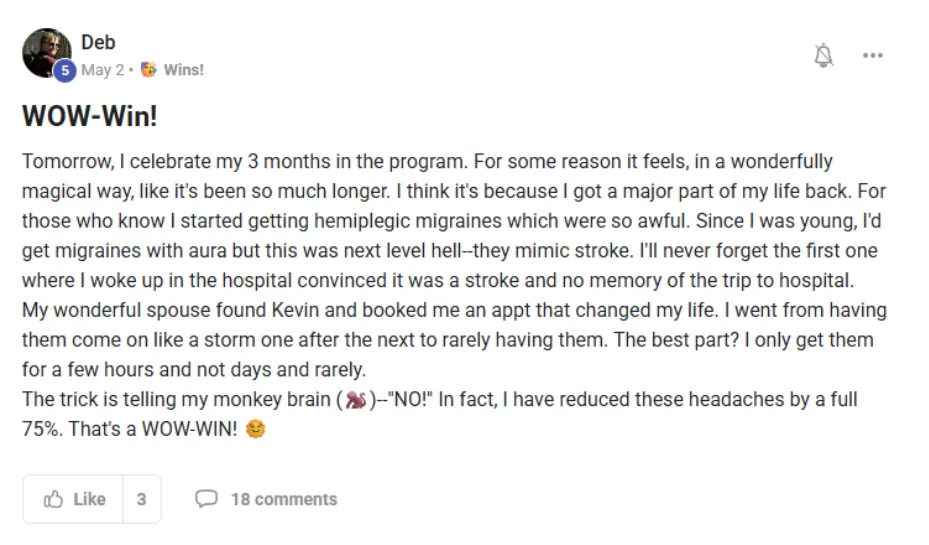 Clients of ours have reset and rewired their nervous systems to stop migraine headaches — even after years of pain, failed treatments, and “I’ve tried everything” frustration...