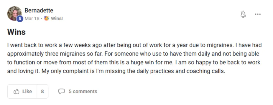 🌿 Transform Bernie, with hemiplegic migraine attacks who had to stop working — into someone who reclaimed her stability, landed her dream job, and got her life back.